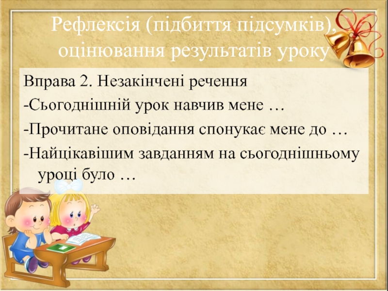 Слайд 46Рефлексія (підбиття підсумків), оцінювання результатів уроку