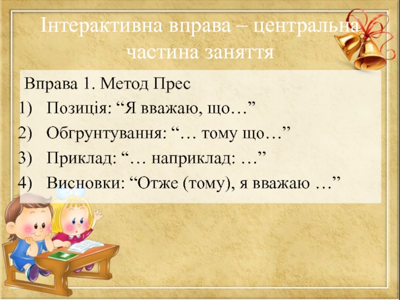 Слайд 38Інтерактивна вправа – центральна частина заняття