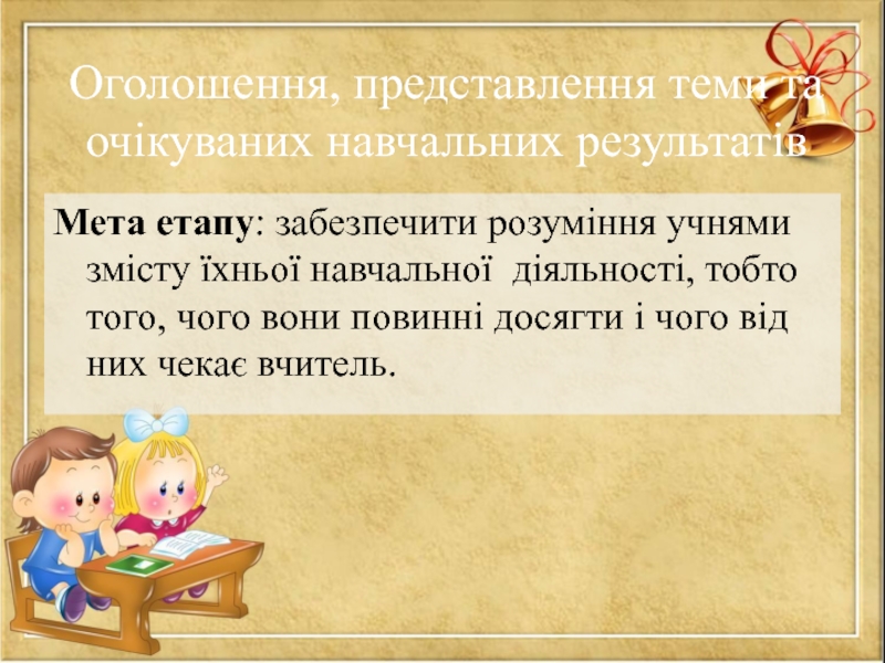II. Оголошення, представлення теми та очікуваних навчальних