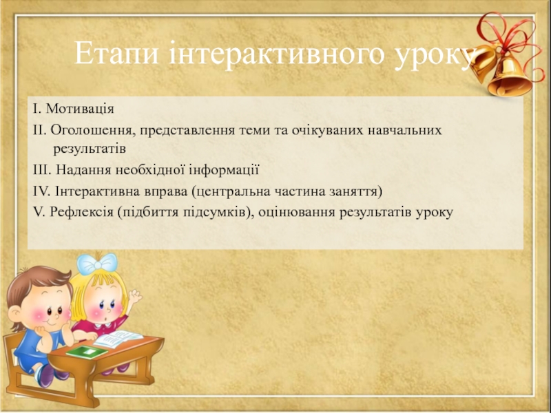 Слайд 13Етапи інтерактивного уроку