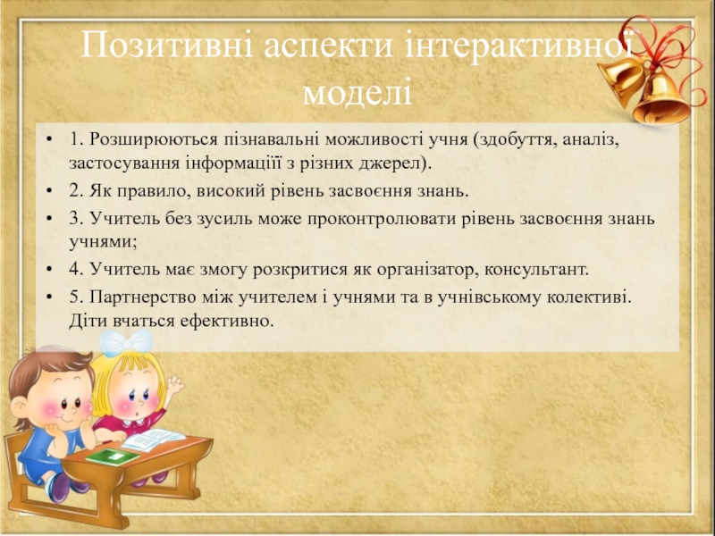 Слайд 6Позитивні аспекти інтерактивної моделі