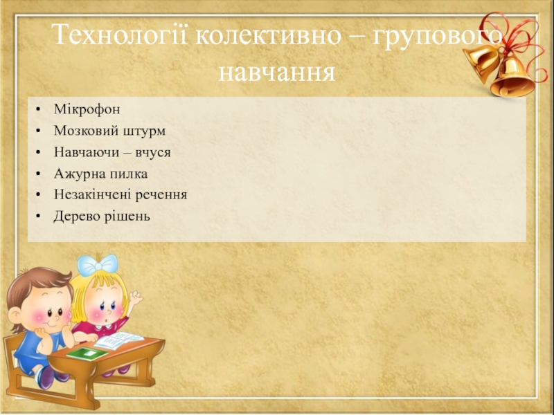 Слайд 10Технології колективно – групового навчання