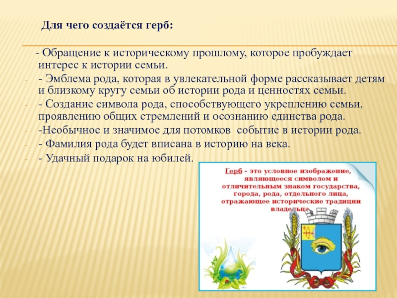 Слайд 4 Для чего создаётся герб: