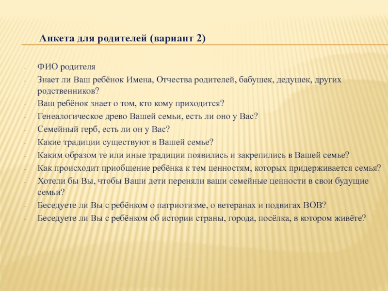 Слайд 7 Анкета для родителей (вариант 2)