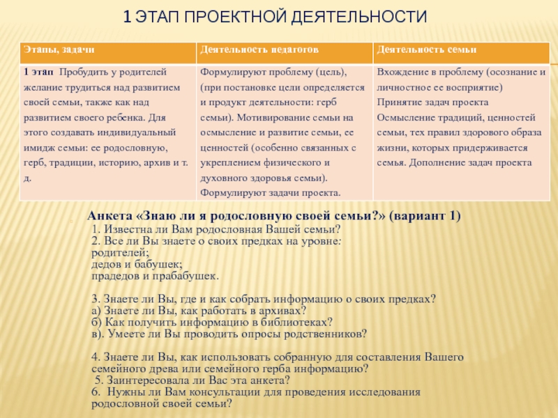 1 этап проектной деятельности