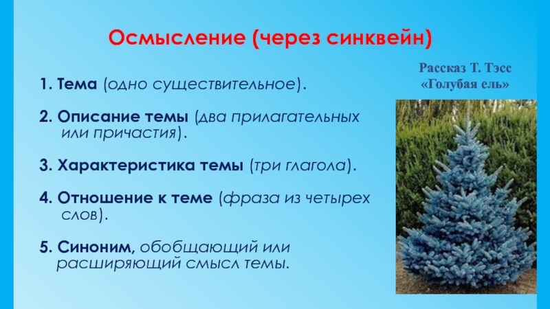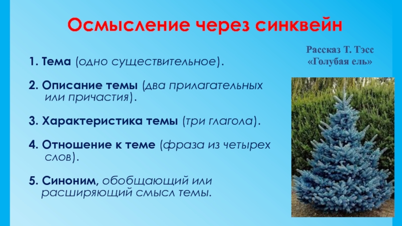 Рассказ Т. Тэсс «Голубая ель»