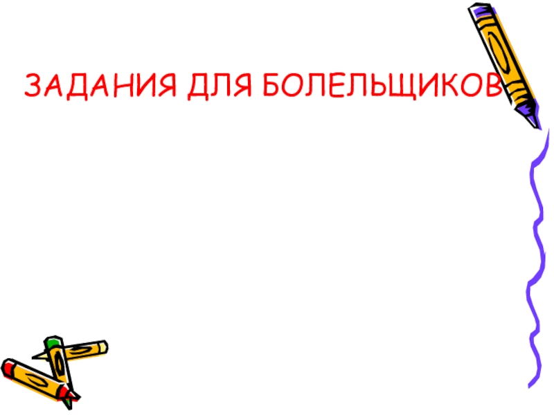 Слайд 11ЗАДАНИЯ ДЛЯ БОЛЕЛЬЩИКОВ