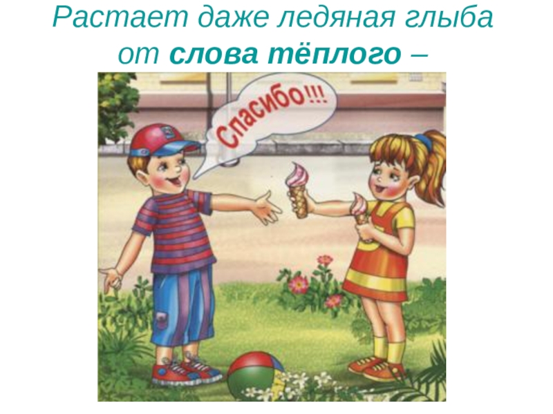 Слайд 11Растает даже ледяная глыба от слова тёплого –