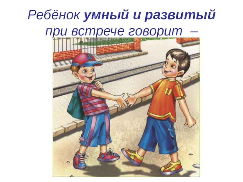 Слайд 9Ребёнок умный и развитый при встрече говорит –