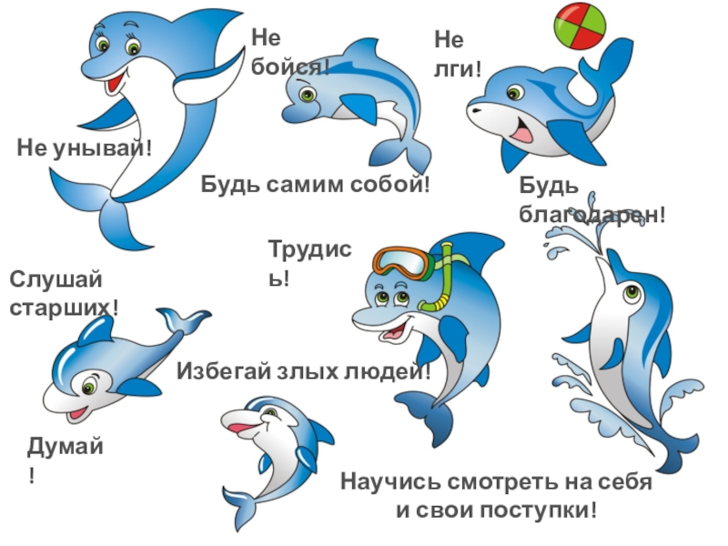 Не унывай!Не бойся!Не лги!Трудись!Думай!Будь благодарен!Слушай старших!Будь самим собой!Избегай злых людей!Научись смотреть на себя  и свои поступки!