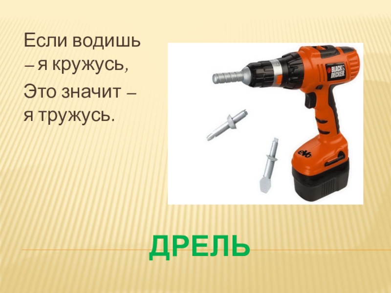 ДРЕЛЬЕсли водишь – я кружусь,Это значит – я тружусь.