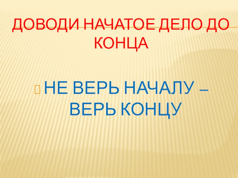 Слайд 5ДОВОДИ НАЧАТОЕ ДЕЛО ДО КОНЦА