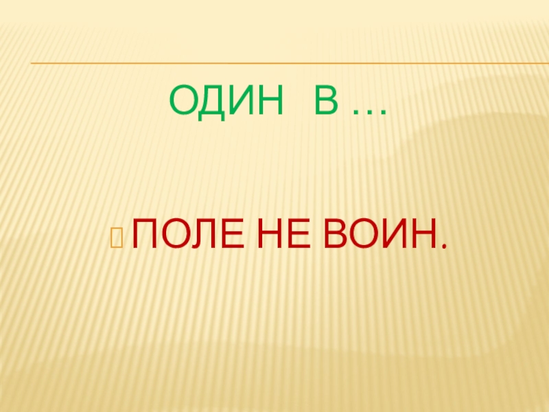 ОДИН  В …ПОЛЕ НЕ ВОИН.