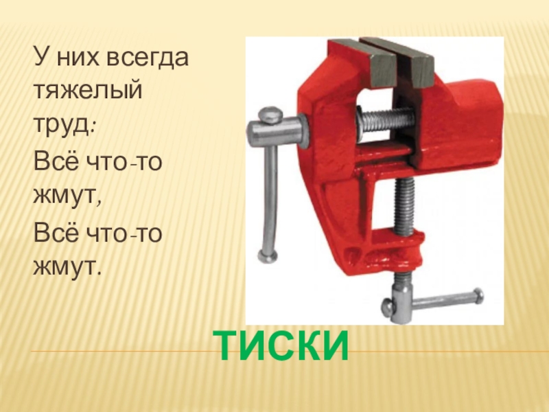 ТИСКИУ них всегда тяжелый труд:Всё что-то жмут,Всё что-то жмут.