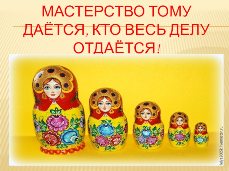 Слайд 3МАСТЕРСТВО ТОМУ ДАЁТСЯ, КТО ВЕСЬ ДЕЛУ ОТДАЁТСЯ!