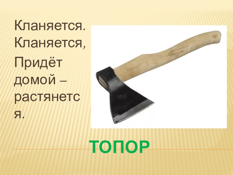 ТОПОРКланяется. Кланяется, Придёт домой – растянется.