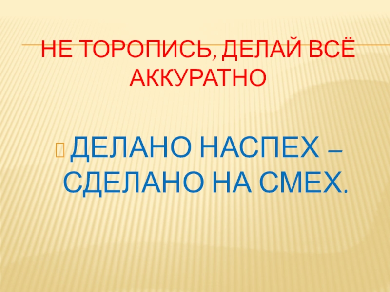 Слайд 6НЕ ТОРОПИСЬ, ДЕЛАЙ ВСЁ АККУРАТНО