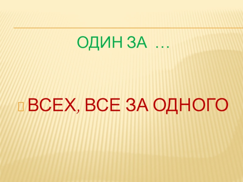 ОДИН ЗА …ВСЕХ, ВСЕ ЗА ОДНОГО