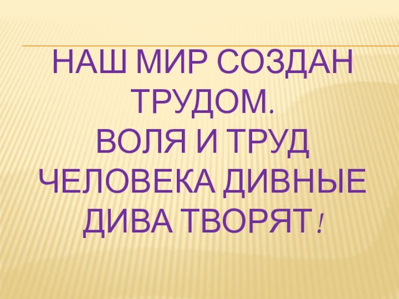 Слайд 2НАШ МИР СОЗДАН ТРУДОМ. ВОЛЯ И ТРУД ЧЕЛОВЕКА ДИВНЫЕ ДИВА ТВОРЯТ!