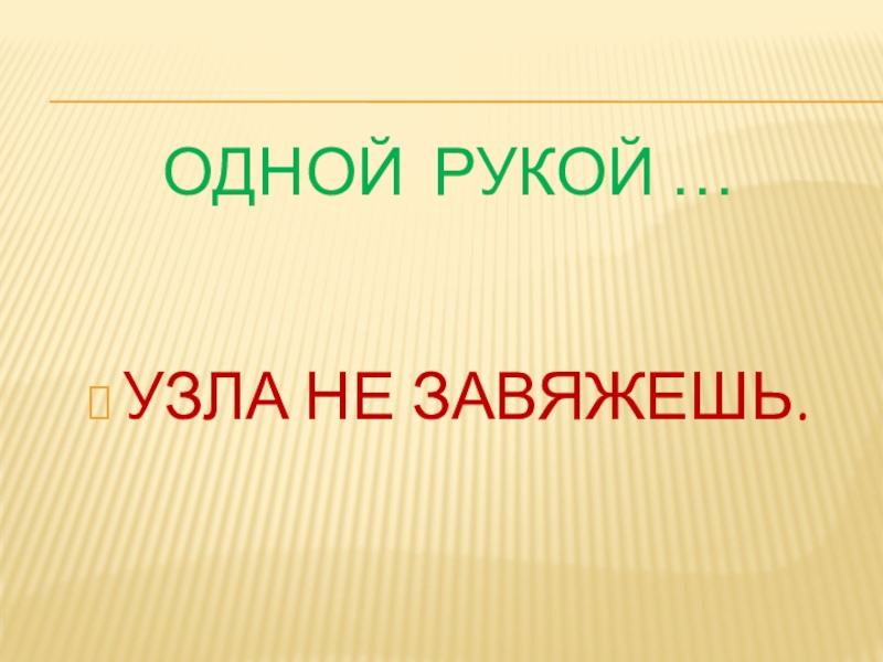 ОДНОЙ РУКОЙ …УЗЛА НЕ ЗАВЯЖЕШЬ.
