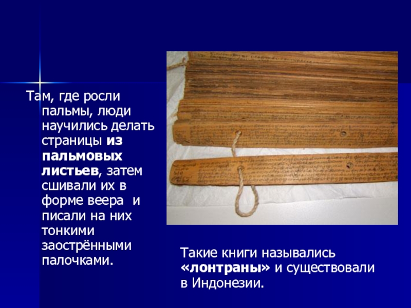 Такие книги назывались «лонтраны» и существовали в Индонезии.