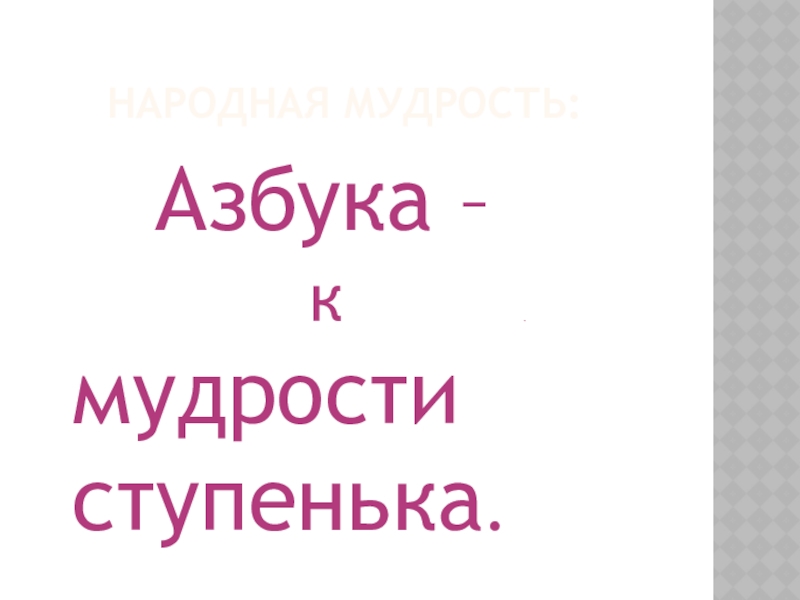 Народная мудрость: Азбука – к . мудрости ступенька.