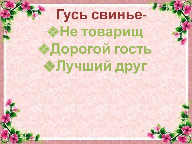 Гусь свинье-Не товарищДорогой гостьЛучший друг