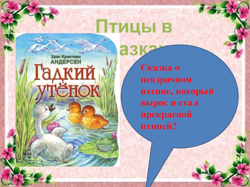 Птицы в сказкахСказка о невзрачном птенце, который вырос и стал прекрасной птицей?