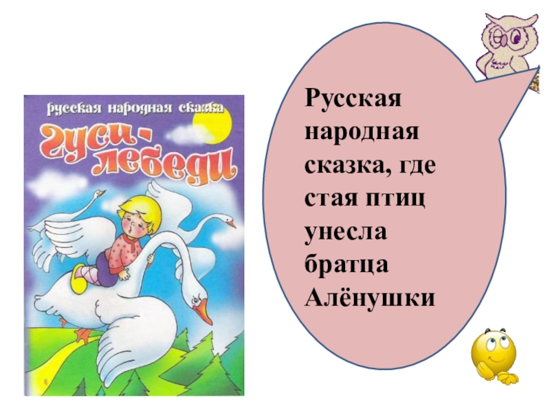 Слайд 30Русская народная сказка, где стая птиц унесла братца Алёнушки