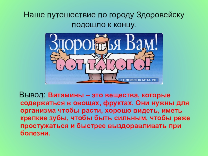 Слайд 17Наше путешествие по городу Здоровейску подошло к концу.