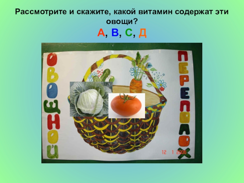 Слайд 16Рассмотрите и скажите, какой витамин содержат эти овощи?