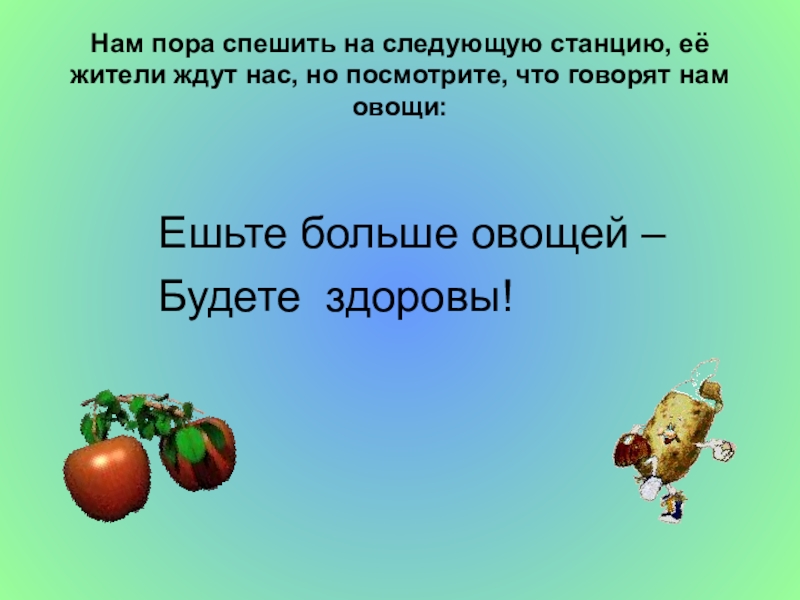 Слайд 9Нам пора спешить на следующую станцию, её жители ждут нас, но