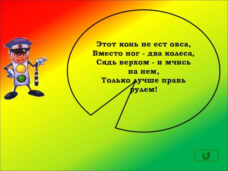 Этот конь не ест овса,Вместо ног - два колеса,Сядь верхом - и мчись на нем,Только лучше правь