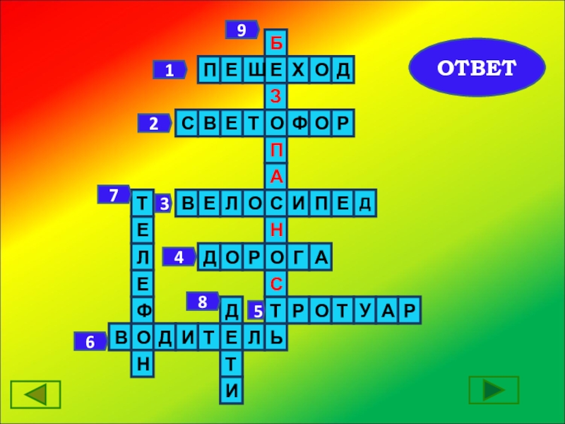 ВОДИТЕЛЬНФЕЛЕТДТИТСОНСАПОЗЕБРОТУАРГАРОДИПЕДОЛЕВФОРТЕВСХОДШЕП123456789ОТВЕТ