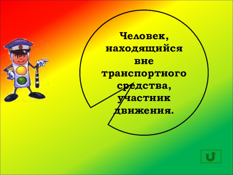 Слайд 12Человек, находящийся вне транспортного средства, участник движения.