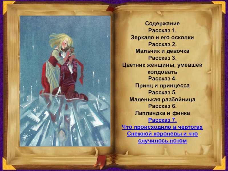 В ЦАРСТВЕ СНЕЖНОЙ КОРОЛЕВЫСодержаниеРассказ 1. Зеркало и его осколкиРассказ 2. Мальчик и девочкаРассказ 3. Цветник женщины, умевшей