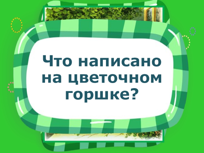 Слайд 8Что написано на цветочном горшке?