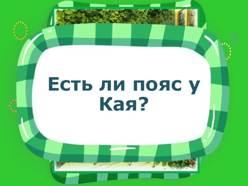Слайд 10Есть ли пояс у Кая?