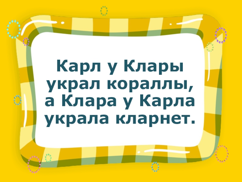Карл у Кларыукрал кораллы,а Клара у Карла украла кларнет.