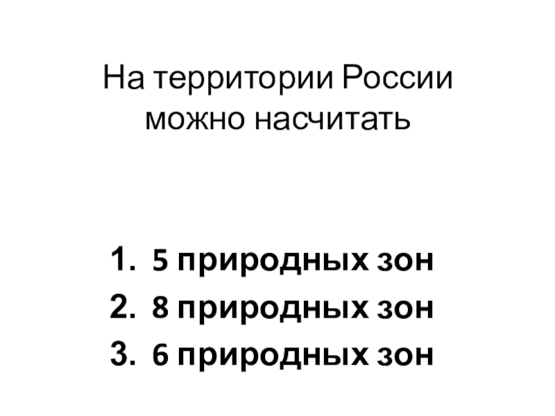 На территории России можно насчитать5 природных зон8 природных зон6 природных зон