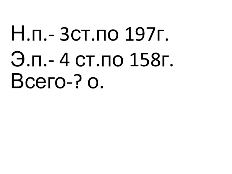 Слайд 25Н.п.- 3ст.по 197г. Э.п.- 4 ст.по 158г.