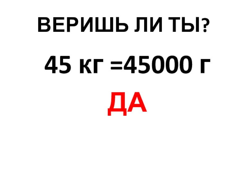 ВЕРИШЬ ЛИ ТЫ?45 кг =45000 гДА