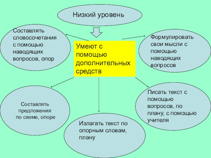 Писать текст с помощью вопросов, по плану, с помощью учителя