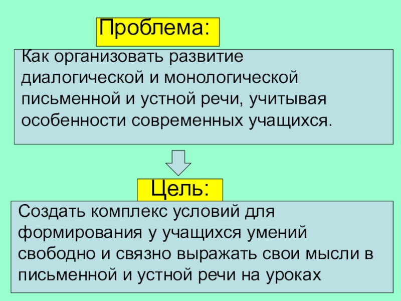 Создать комплекс условий для формирования у учащихся умений свободно и связно выражать свои мысли в письменной и устной речи на уроках