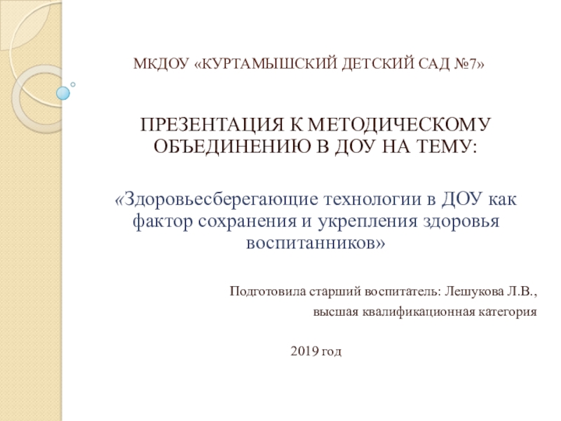 Подготовила старший воспитатель: Лешукова Л.В.,