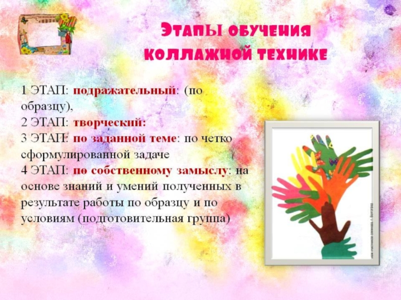 Презентация к методической разработке Организованные виды деятельности, способствующие художественно - эстетическому развитию детей. Коллаж как средство развития творческих способностей дошкольников и способ креативного оформления детских работ Детские презентации