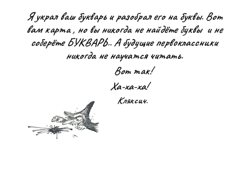 Я украл ваш букварь и разобрал его на буквы. Вот вам карта , но вы