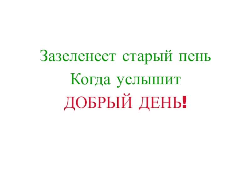 Зазеленеет старый пеньКогда услышитДОБРЫЙ ДЕНЬ!