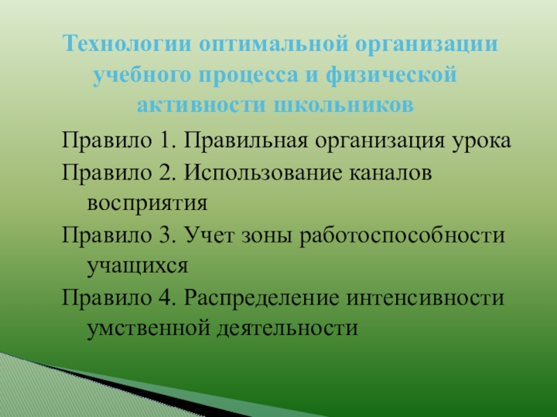 Технологии оптимальной организации учебного процесса и физической активности школьников
