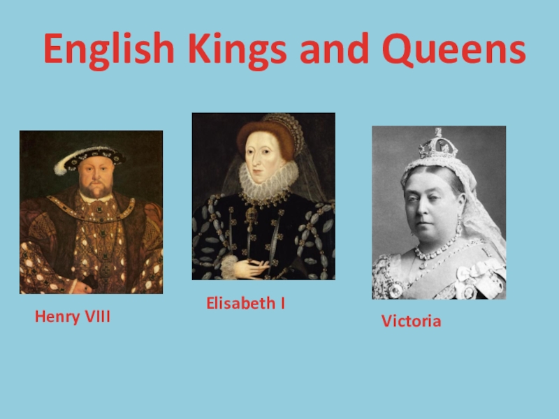 English Kings and QueensHenry VIII Elisabeth IVictoria